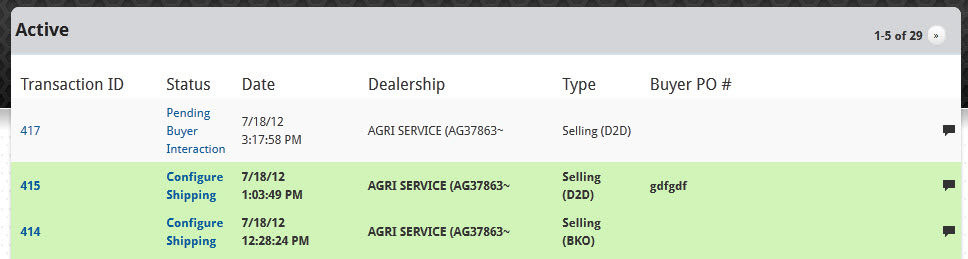 In your list of active transactions that have a status of Respond to Buyer Quote, click the link in Transaction ID column or the Status column for the quote you want to review.