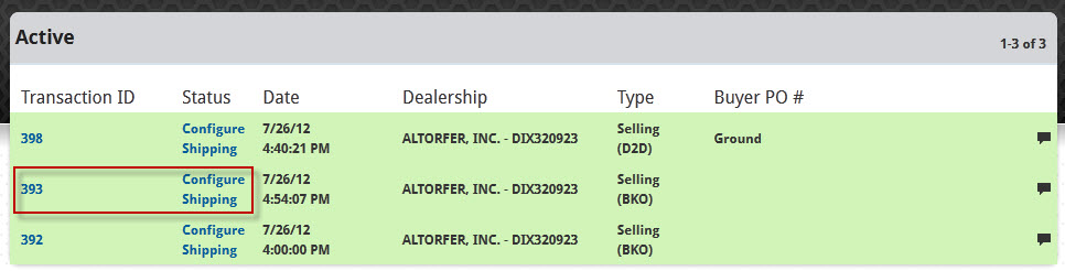 In your list of active transactions, backorder transactions, if they exist, will be listed with a Type value of Selling (BKO), instead of the standard Buying (D2D) or Selling (D2D), where D2D indicates dealer-to-dealer transactions.