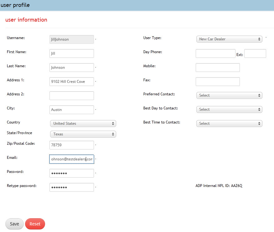 When you are ready to save your changes, press the Save button. If you wish to cancel your changes, press the Reset button.